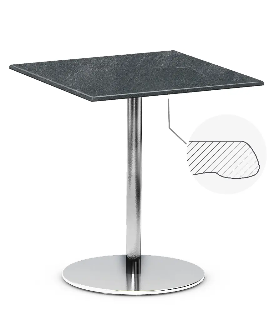 Die wetterfeste Outdoortischplatte überzeugt durch ihre robuste Bauweise, ihre Widerstandsfähigkeit gegenüber Umwelteinflüssen und ihre einfache Pflege. Sie eignet sich ideal für den Einsatz in Gastronomiebetrieben, Cafés, Terrassen, Gärten und anderen Außenbereichen.