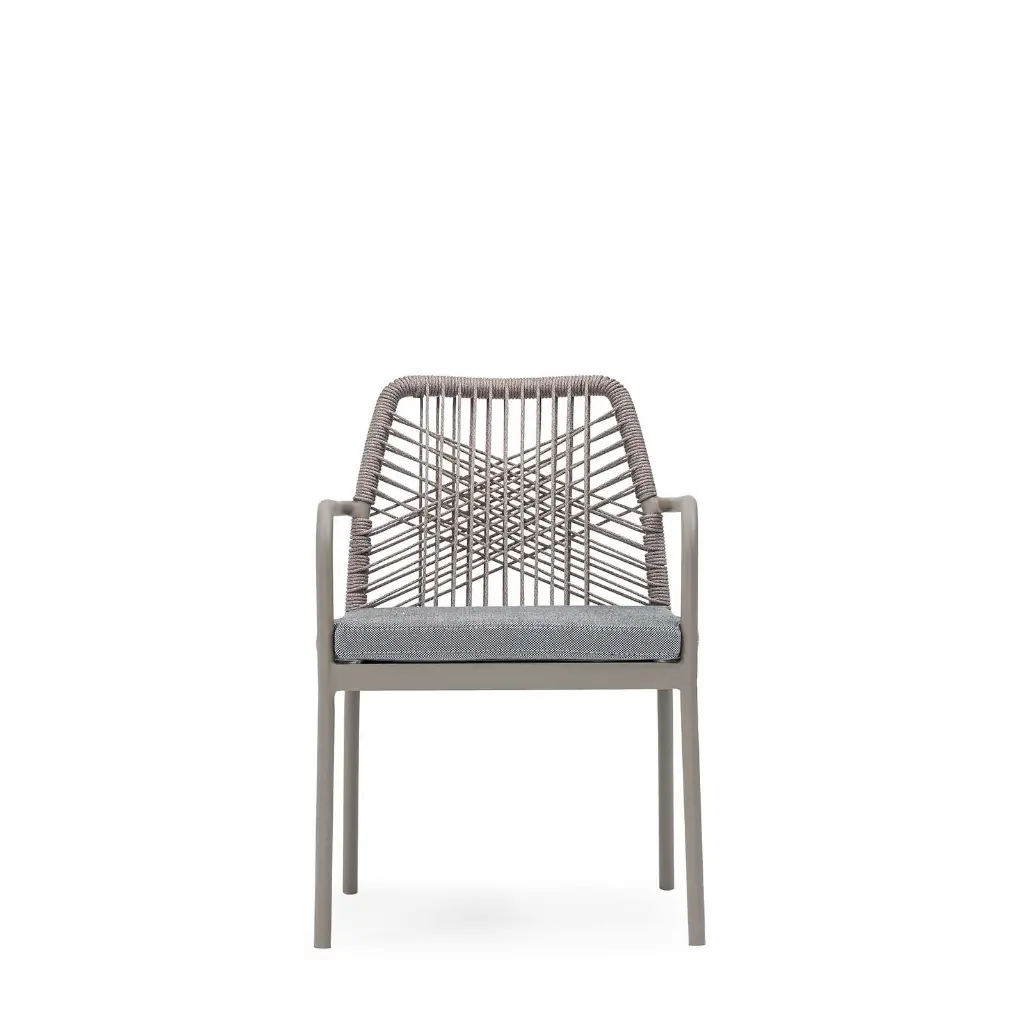 Mit dem Crete Outdoor-Stuhl holen Sie sich modernes Design und höchsten Sitzkomfort in Ihren Außenbereich. Das elegante Gestell aus pulverbeschichtetem Metall, die kunstvolle Seilbespannung und das bequeme Sitzpolster machen diesen Stuhl zur perfekten Wahl für Terrasse, Garten oder Balkon.